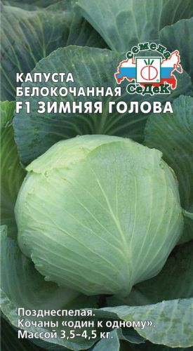 Гибрид F1 "Зимняя Голова" – среднепоздний сорт‚ характеризующийся плотными‚ округло-плоскими кочанами. Вес кочана варьируется от 2‚5 до 4 кг. Отличается высокой устойчивостью к растрескиванию и хорошей лежкостью.