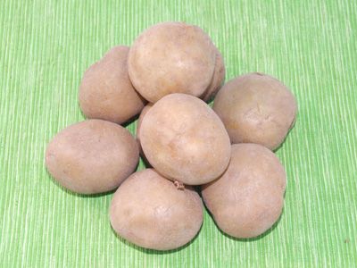 Клубни картофеля сорта Лукьяновский имеют характерную овально-округлую форму с тупой вершиной, что является типичным признаком данного сорта. Столонный след выражен плоско. Кожура клубней обладает светло-бежевым окрасом, что придает им товарный вид. Глазки на поверхности клубней малочисленные и мелкие, что способствует удобству при очистке и переработке. Мякоть клубней имеет кремовый оттенок. Средняя масса товарного клубня варьируется в пределах 90-150 граммов. Данные характеристики формы и окраски клубней являются важными показателями для оценки товарного качества и потребительских свойств сорта Лукьяновский. Сочетание овально-округлой формы, светло-бежевой кожуры и кремовой мякоти делает клубни данного сорта привлекательными для потребителя. Отсутствие глубоких глазков также является преимуществом, так как облегчает процесс кулинарной обработки.