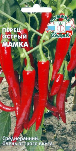Сорт острого перца Мамка характеризуется среднеранним сроком созревания (105-110 дней от всходов). Растение среднерослое, достигает высоты 60 см, отличается слабой облиственностью. Плоды пониклые, удлиненно-конусовидной формы, в технической спелости светло-зеленые, а в биологической – насыщенно-красные. Масса плодов варьируется от 10 до 20 г, толщина стенки составляет 3 мм. Отмечается высокая острота вкуса. Урожайность культуры составляет 2,3-2,6 кг/м.. Сорт демонстрирует устойчивость к вирусу табачной мозаики и отличается обильным плодоношением. Рекомендуется для использования в кулинарных целях, консервирования и сушки;
