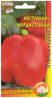 Сорт сладкого перца Настенька-мордастенька характеризуется крупными плодами кубовидной формы, массой от 100 до 150 г и толщиной стенок от 6 до 8 мм. Плоды обладают отличными вкусовыми качествами, окрашены в красный цвет в биологической спелости и имеют сладкий вкус. Растение пригодно для выращивания как в открытом, так и в защищенном грунте. Период от высадки рассады до сбора урожая составляет 90-95 дней. Доступные данные о высоте куста отсутствуют. Семена предлагаются в упаковках по 0,2 г, также встречаются наборы из нескольких упаковок.