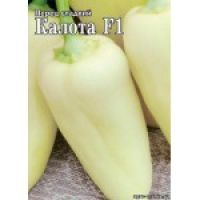 Гибрид сладкого перца Калота F1 характеризуется высокой урожайностью и ранним сроком созревания (60 дней от высадки рассады). Растение среднерослое, открытого типа с короткими междоузлиями, что способствует хорошей освещенности и развитию плодов. Плоды конусовидной формы, белого цвета, отличаются отличным качеством и крупными размерами (масса 170 г, длина до 15 см, диаметр до 9 см). Толщина стенки плода составляет 4,0-4,5 мм. Отмечается дружная отдача урожая, что обеспечивает стабильный сбор. Гибрид подходит для выращивания в открытом грунте и неотапливаемых теплицах. Калота F1 демонстрирует хорошую устойчивость к вирусу табачной мозаики (Tm. 0-2). По сравнению с гибридом Сенчури F1, Калота F1 отличается более компактным растением и более крупными плодами.