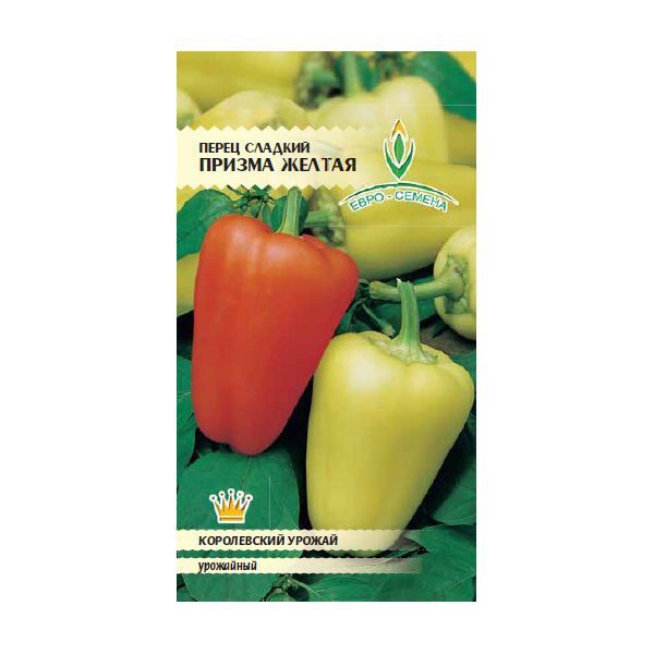 Гибрид сладкого перца Призма желтая характеризуется среднеранним сроком созревания (110-115 дней от посева до уборки). Растение среднерослое, высотой 60-80 см, с полураскидистым типом куста. Плоды призмовидной формы, пониклые, в технической спелости зеленого цвета, в биологической – ярко-желтого. Средняя масса плода составляет 110-160 г, толщина стенки достигает 7 мм. Отличается высокой урожайностью и хорошей транспортабельностью. Рекомендуется для выращивания в открытом и защищенном грунте.