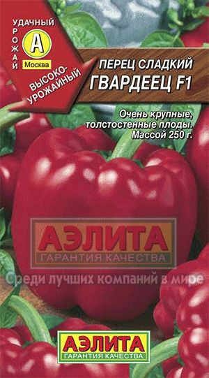 Гвардеец F1 – среднеспелый гибрид сладкого перца‚ предназначенный для культивирования в открытом грунте и под пленочными укрытиями; Период от всходов до технической спелости составляет 120-125 дней. Характеризуется формированием крупных‚ глянцевых плодов кубовидной формы с толщиной стенки 8-9 мм и массой 220-250 г. Растения полураскидистые‚ высотой около 80 см‚ требуют подвязки. Одновременно на одном растении созревает 8-10 плодов. Гибрид демонстрирует высокую урожайность‚ достигающую 5-6 кг с куста. Рекомендуется для свежего потребления.