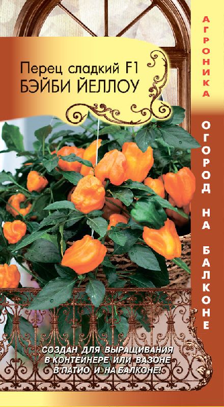 Гибрид сладкого перца Бэйби Йеллоу F1 — раннеспелый‚ обильно плодоносящий сорт‚ специально выведенный для малообъемной культуры. Компактное растение высотой 30-45 см и диаметром до 30 см идеально подходит для выращивания в горшках‚ контейнерах‚ балконных ящиках и подвесных корзинах. Вегетационный период составляет 75-80 дней от появления всходов до созревания плодов. Плоды усеченно-конусовидной формы‚ трех- или четырех-камерные‚ массой до 80 г. В технической спелости окраска плодов темно-зеленая‚ по мере созревания меняется на ярко-желтую или оранжевую. Мякоть характеризуется сочностью‚ хрустящей текстурой и приятным ароматом. Отличается высокой урожайностью и устойчивостью к стрессовым факторам‚ что делает его удобным вариантом для выращивания даже начинающими огородниками. Идеален для использования в свежем виде и различных кулинарных переработках.