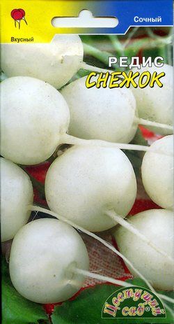 Снежок – раннеспелый сорт редиса, характеризующийся белыми корнеплодами. Отличается скороспелостью и хорошей урожайностью. Предназначен для открытого и защищенного грунта.