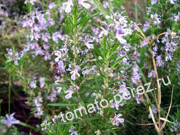 Вечнозелёный кустарник с мелкими кожистыми листьями и голубыми, розовыми или белыми цветками. В средней полосе России выращивается в комнатной культуре. На лето хорошо высадить в сад или вынести на балкон. Листья молодых побегов используют в кулинарии как приправу к овощным и рыбным блюдам, для приготовления соусов, настаивают вино и уксус. Они обладают сильным, сладковатым запахом, напоминающим запах сосны и очень пряным островатым вкусом. В народной медицине розмарин применяют как средство для лечения сердечно-сосудистых заболеваний, входит в состав кровеочистительных и успокоительных сборов. Еще о Розмарине. Фото с сайта: www.internatura.org
