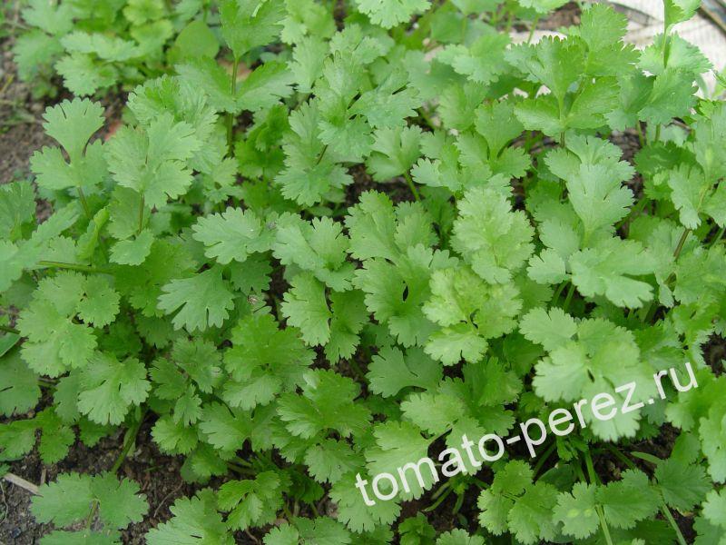 Однолетнее травянистое растение с очень специфическим запахом. Зелень используется в салатах, бутербродах, первых и вторых блюдах. Семена Кориандра - известная всем пряность, которую можно добавлять в очень многие блюда и применять при консервировании. С успехом применяется при лечении болезней желудочно-кишечного тракта, гипертонии, простудных. Противопоказан при беременности. Очень ограниченно при тромбофлебите и после инфаркта миокарда. Фото с сайта: schoolgardenweekly.com