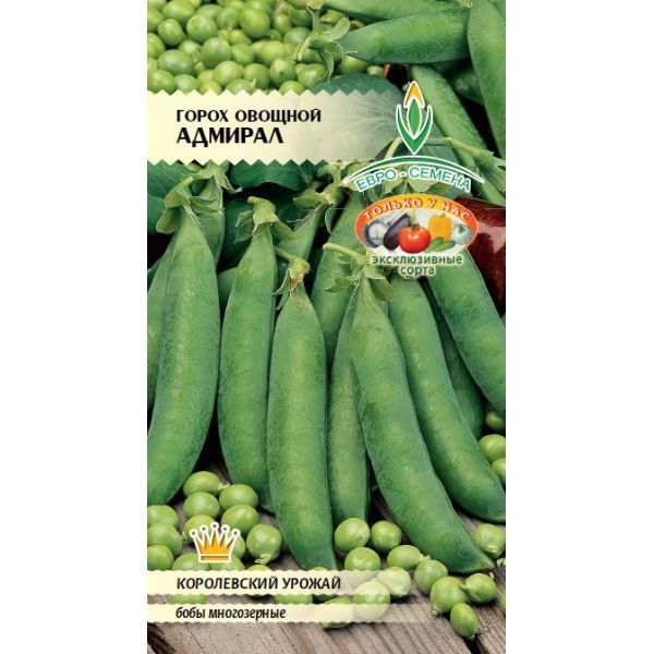 Горох Адмирал представляет собой среднеранний лущильный сорт‚ характеризующийся низкорослым типом растения. Период от всходов до сбора урожая составляет 55-65 дней. Данный сорт отличается неприхотливостью в выращивании и хорошими вкусовыми качествами.