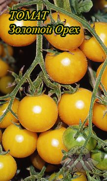 Томат Золотой Орех – раннеспелый сорт черри-томата, предназначенный для выращивания в открытом грунте и пленочных теплицах. Растение формирует мощный куст высотой до 2 м. Плоды округлые, правильной формы, желто-оранжевого цвета, весом 30-50 г. Сладкий вкус без кислинки. На каждой кисти формируется 10-15 плодов. Отличается высокой урожайностью, на одном растении созревает до 200 томатов.