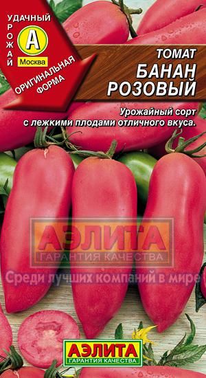 Томат Банан розовый – среднеранний сорт, период от всходов до плодоношения составляет 103-110 дней. Относится к индетерминантному типу, характеризуется высокорослостью (1,5-1,6 м), требует подвязки и пасынкования. Плоды оригинальной перцевидной формы с характерным «носиком», розового цвета. Мякоть мясистая, сахаристая, плотная. Масса плода варьируется от 80 до 120 г. В кисти формируется до 7 плодов. Высокая товарность и хорошая транспортабельность. Подходит для выращивания как в открытом грунте, так и в пленочных теплицах.