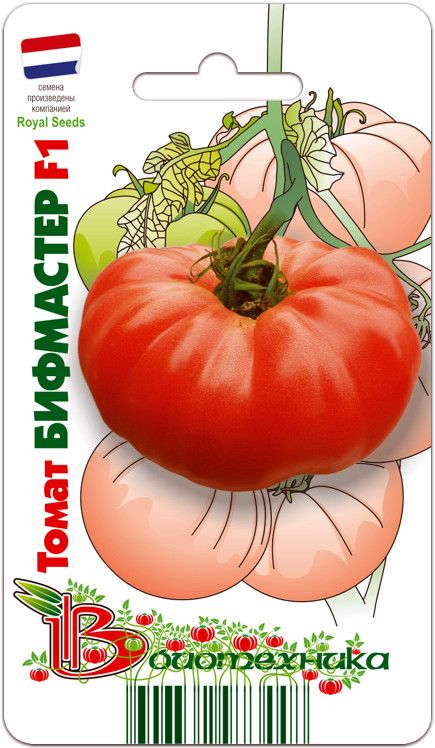 Томат Бифмастер F1 – среднепоздний индетерминантный гибрид, предназначенный для выращивания в пленочных и застекленных теплицах. Вегетационный период составляет около 80 дней после высадки рассады. Плоды плоско-округлые, ребристые, крупные, массой до 800 г, насыщенного красного цвета. Мякоть мясистая, однородная, практически без сока, с отличными вкусовыми качествами. Гибрид ценится за высокую урожайность и прекрасно подходит для приготовления салатов, сэндвичей, горячих блюд. Бифмастер F1 демонстрирует хорошую устойчивость к болезням.