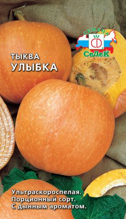 Сорт тыквы "Улыбка" относится к раннеспелым крупноплодным видам. Характеризуется кустовой формой растения и короткими побегами до одного метра. Вегетационный период составляет 85-90 дней. Плоды порционные, массой 0,7-1,5 кг.